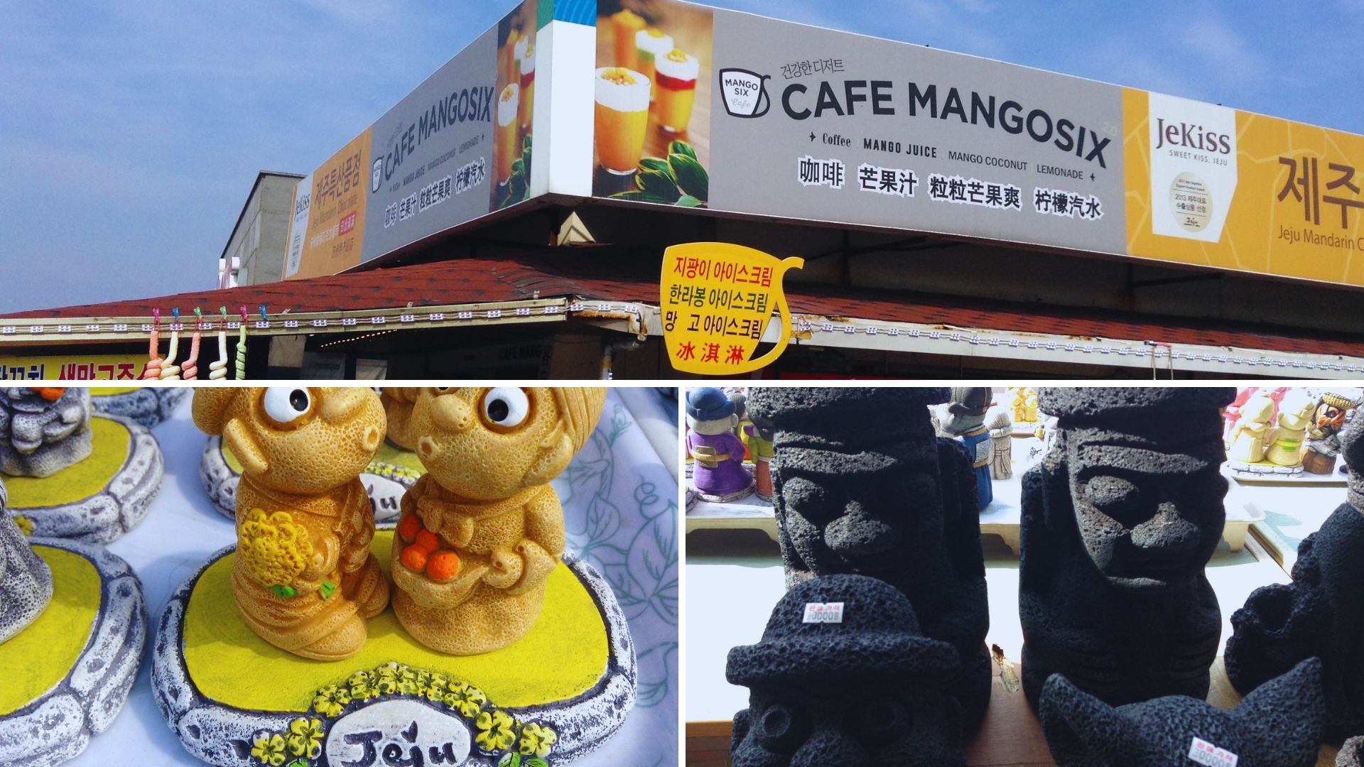 Há um pequeno ponto de venda com produtos locais, como chás, condimentos, doces e até utensílios feitos com pedra vulcânica. Ali, dinheiro local é essencial, pois muitos pontos não aceitam cartões. Também há máquinas de autoatendimento para bebidas e snacks, que só funcionam com notas ou moedas sul-coreanas.