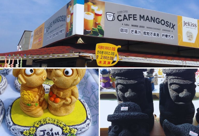 Na base de Seongsan, entre a entrada do parque e o início da trilha, há um pequeno conjunto de lojinhas que, à primeira vista, parecem só mais um ponto turístico — mas não se engane. É ali que se encontram objetos que carregam o espírito da ilha: acessórios feitos com pedra vulcânica, esponjas naturais, produtos de beleza que nunca vi em nenhum outro lugar. Comprei alguns e uso até hoje.